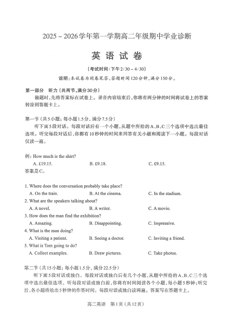 【英语】太原市2025-2026学年第一学期高二年级期中学业诊断.pdf