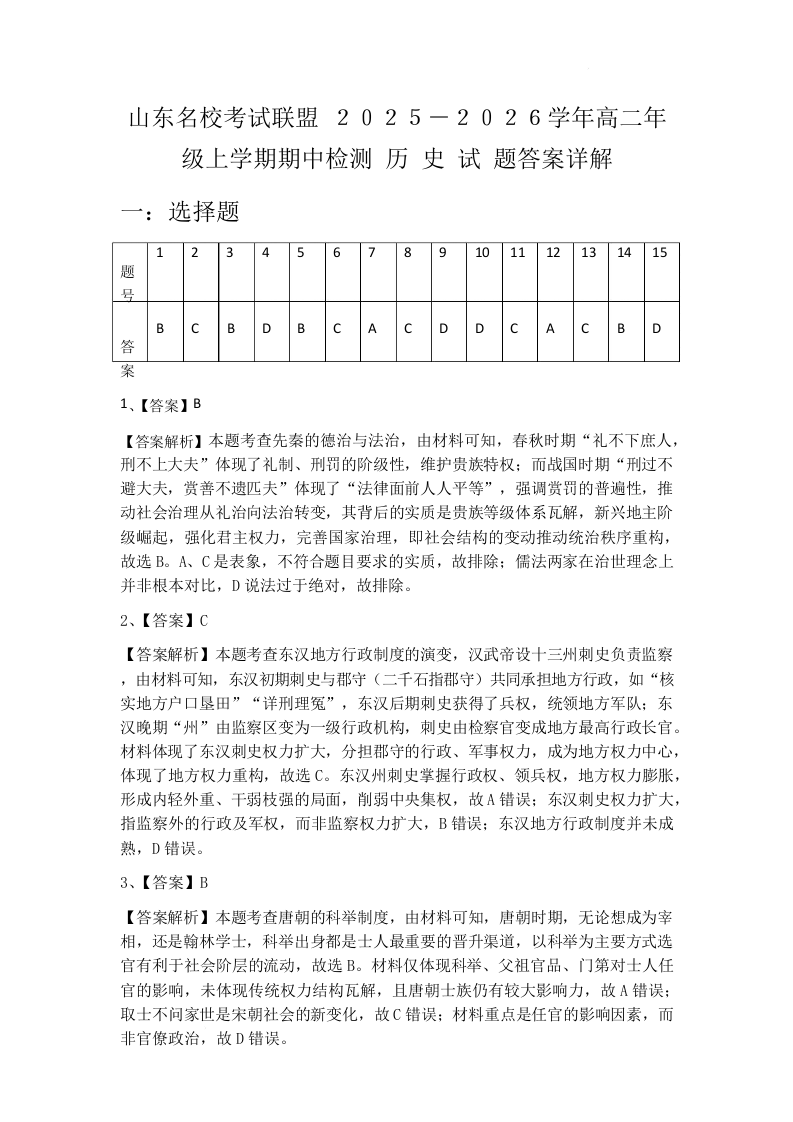 2025-2026山东名校考试联盟11月高二期中考试 历史答案.docx