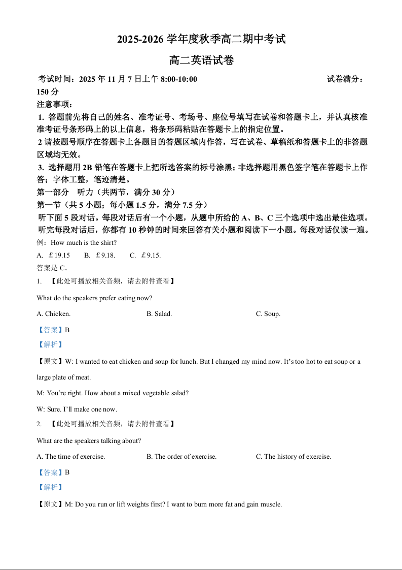 高二英语答案.docx