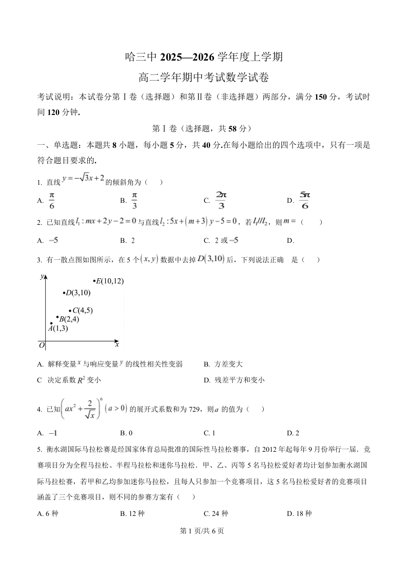 黑龙江省哈尔滨市第三中学2025-2026学年高二上学期期中考试 数学.docx