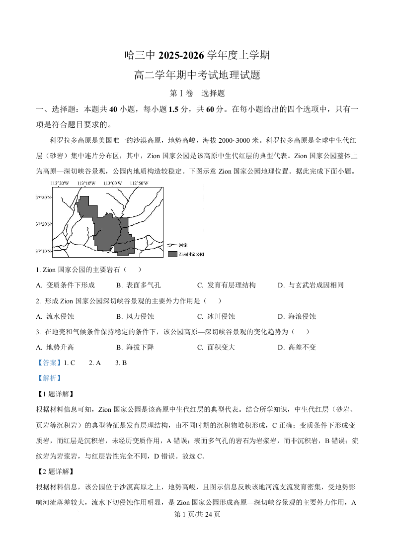 黑龙江省哈尔滨市第三中学2025-2026学年高二上学期期中考试 地理答案.docx