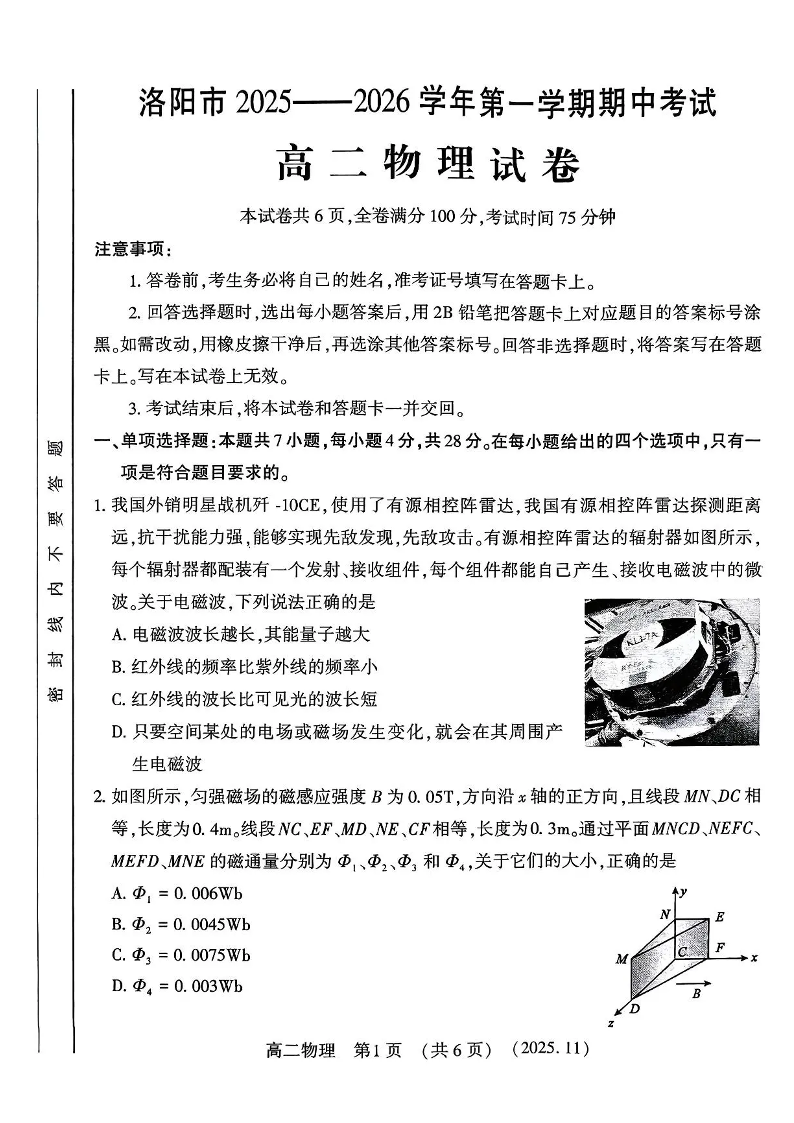 河南省洛阳市2025-2026学年高二上学期期中考试 物理试题(含答案).pdf