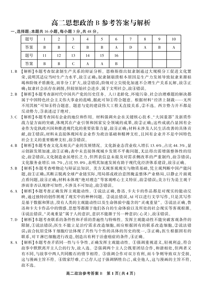 政治答案B·2025年11月高二期中联考.pdf