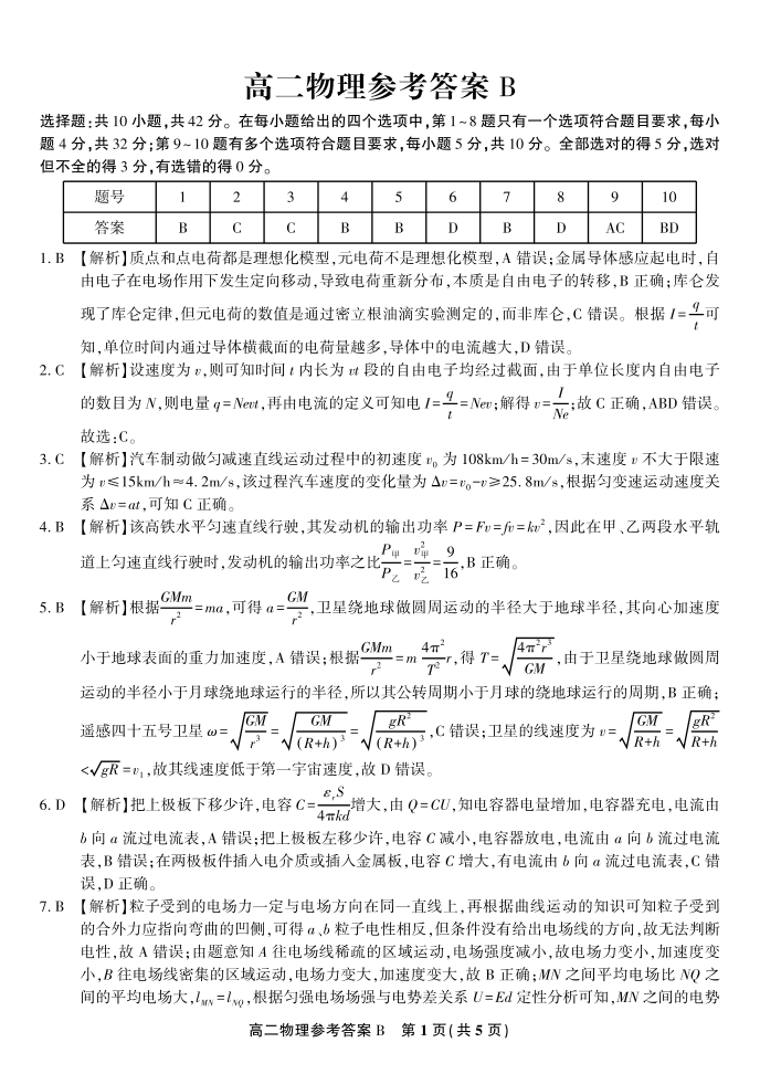物理答案B·2025年11月高二期中联考.pdf
