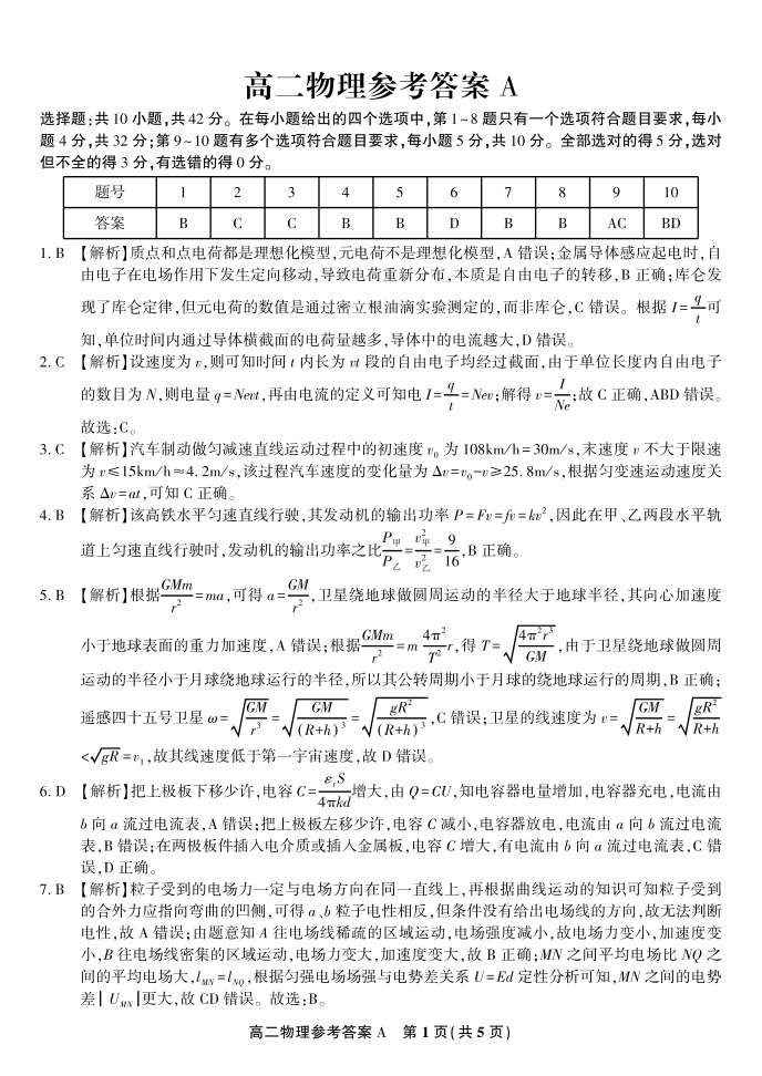 物理答案A·2025年11月高二期中联考.pdf
