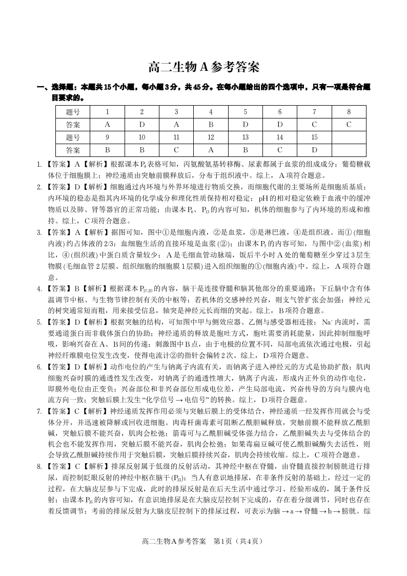生物答案A·2025年11月高二期中联考.pdf