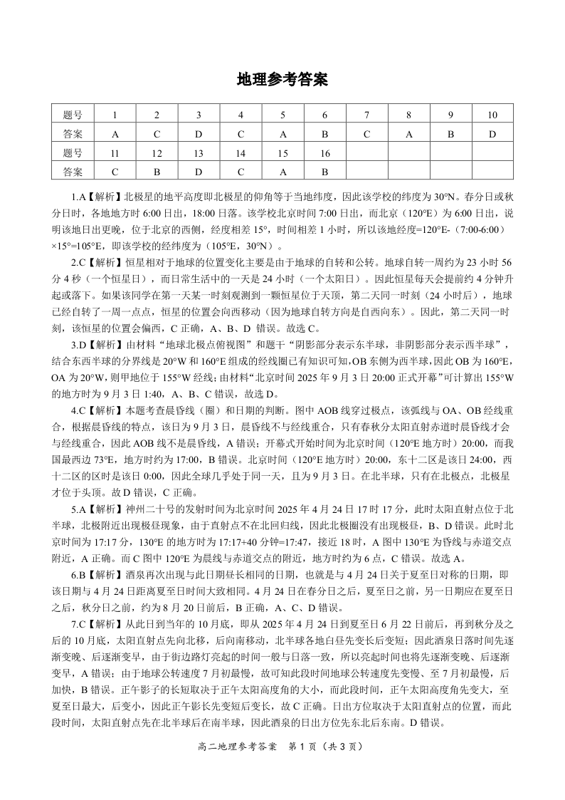 地理答案·2025年11月高二期中联考.pdf