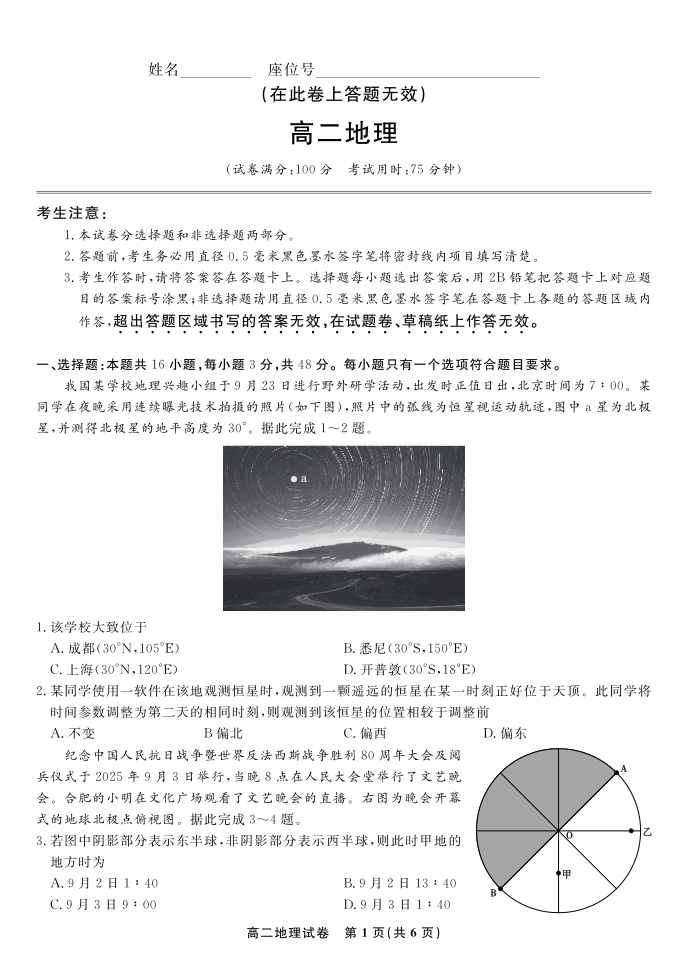 地理·2025年11月高二期中联考.pdf