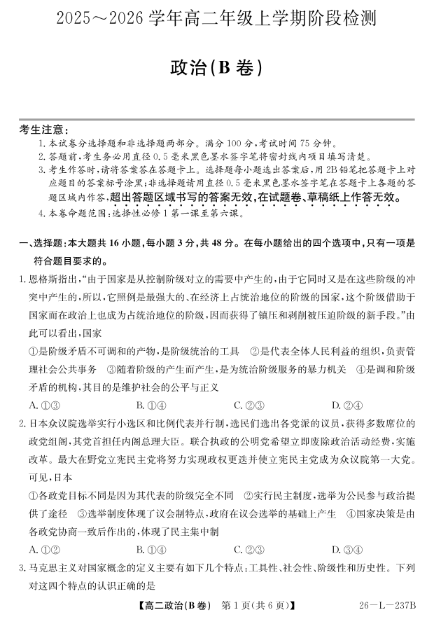 安徽省江淮名校2025-2026学年高二上学期阶段联考-政治(B卷).pdf