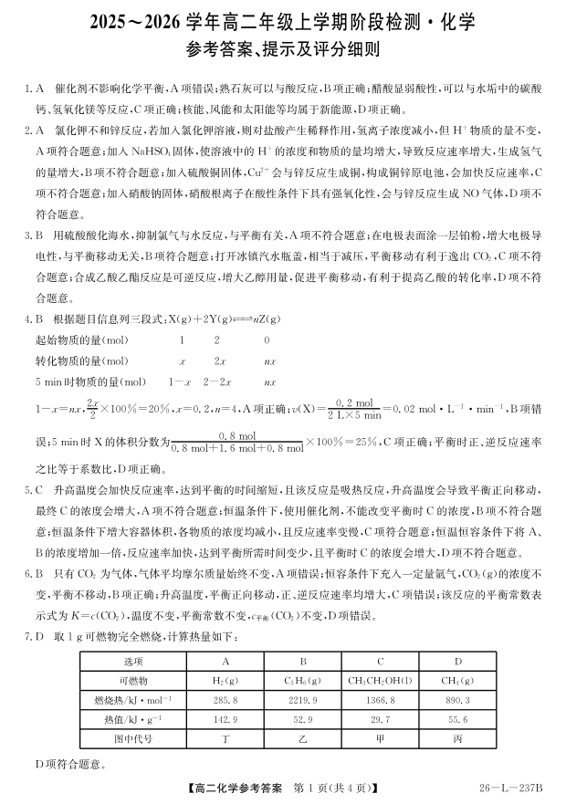 安徽省江淮名校2025-2026学年高二上学期阶段联考-化学答案.pdf
