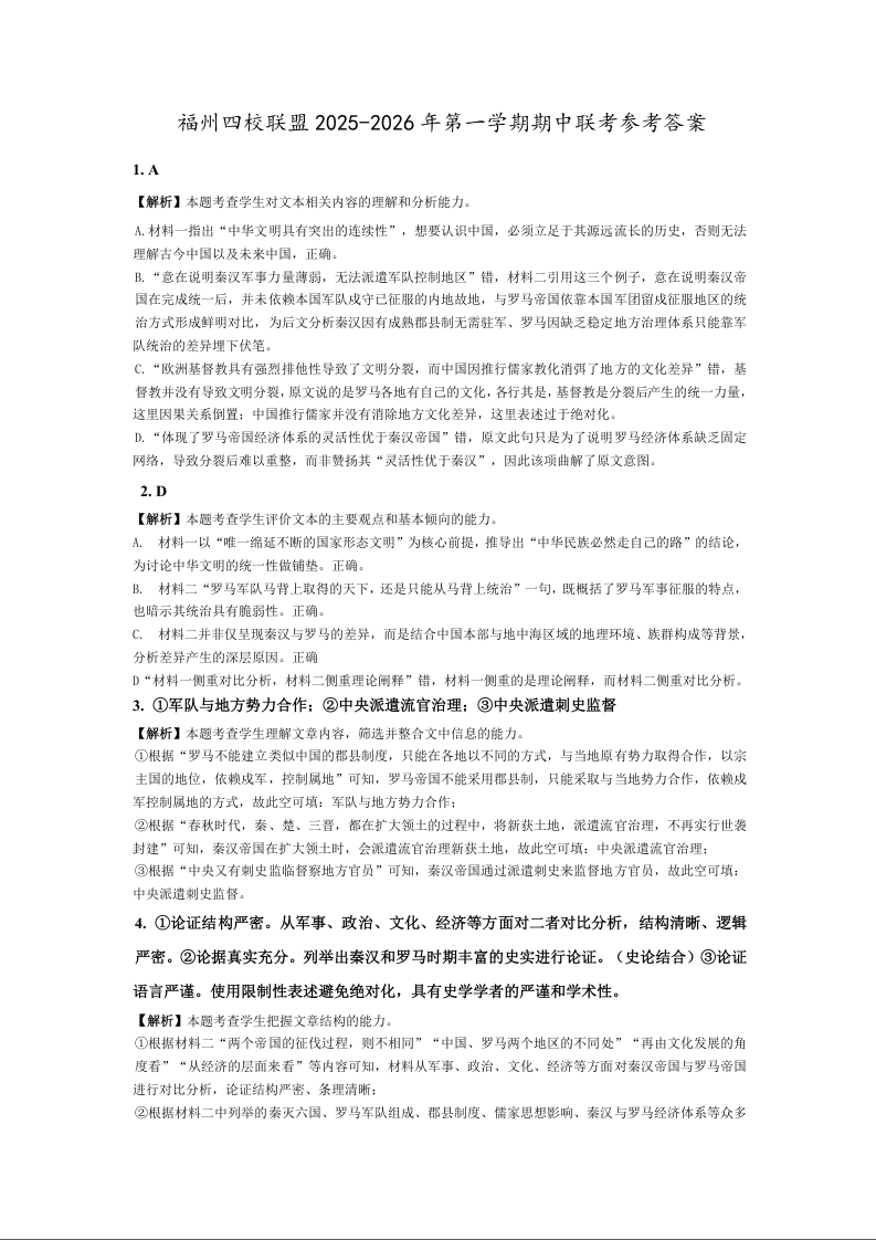 福建省福州市四校联盟2025-2026学年高三上学期期中联考 语文答案.docx