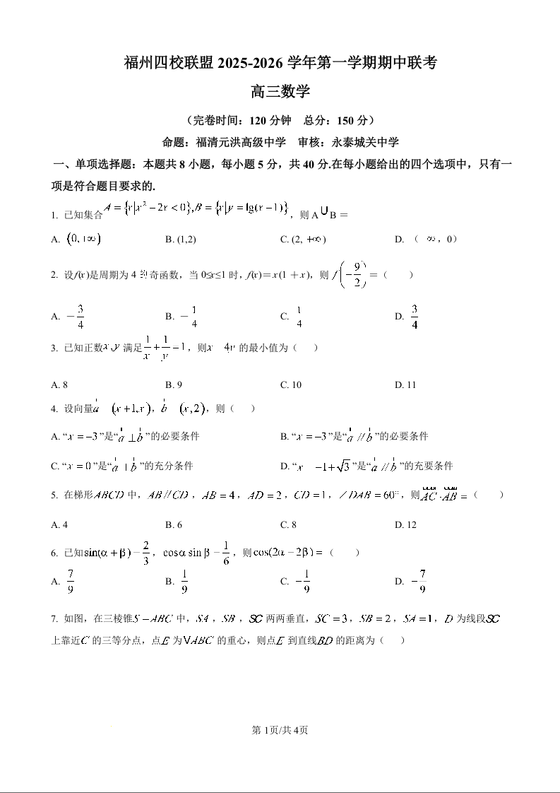 福建省福州市四校联盟2025-2026学年高三上学期期中联考 数学.docx