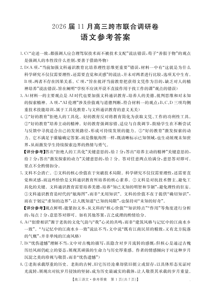 广西壮族自治区百校联考2026届11月高三跨市联合调研卷 语文答案.pdf