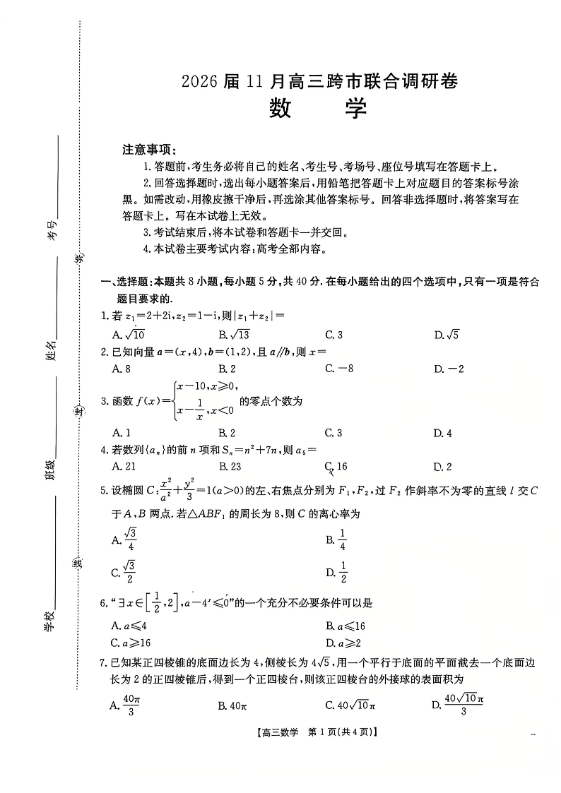 广西壮族自治区百校联考2026届11月高三跨市联合调研卷 数学.pdf