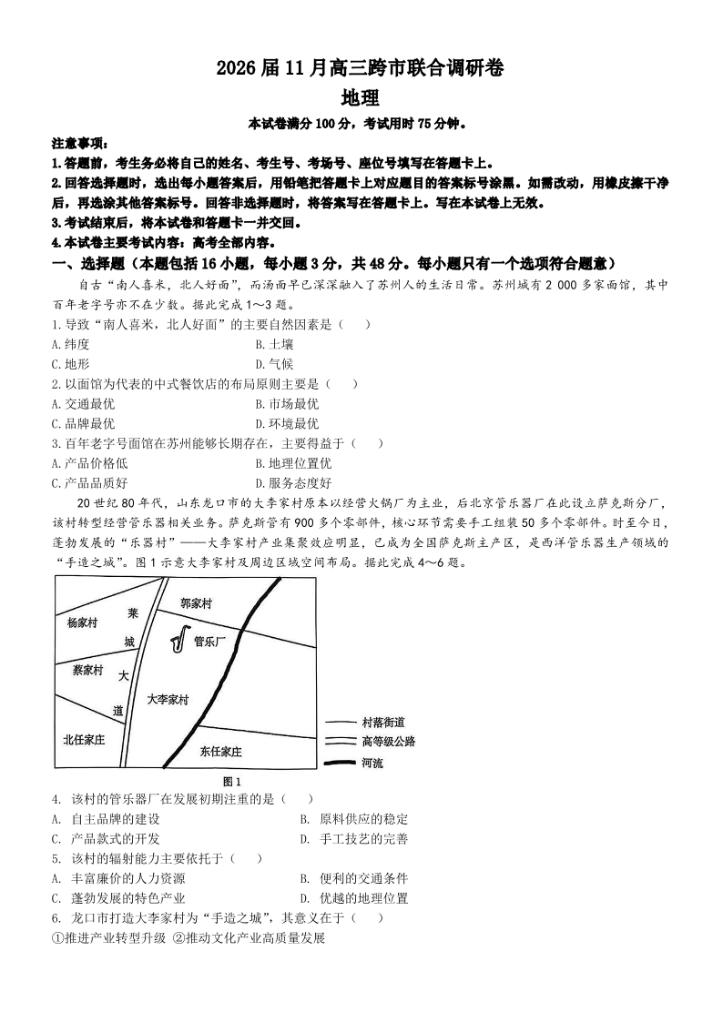 广西壮族自治区百校联考2026届11月高三跨市联合调研卷 地理.pdf