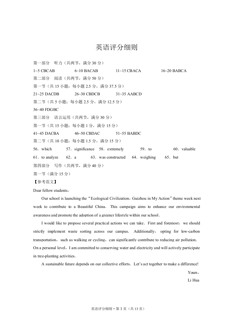 贵阳市第一中学2026届高三上学期11月期中考试 英语答案.docx