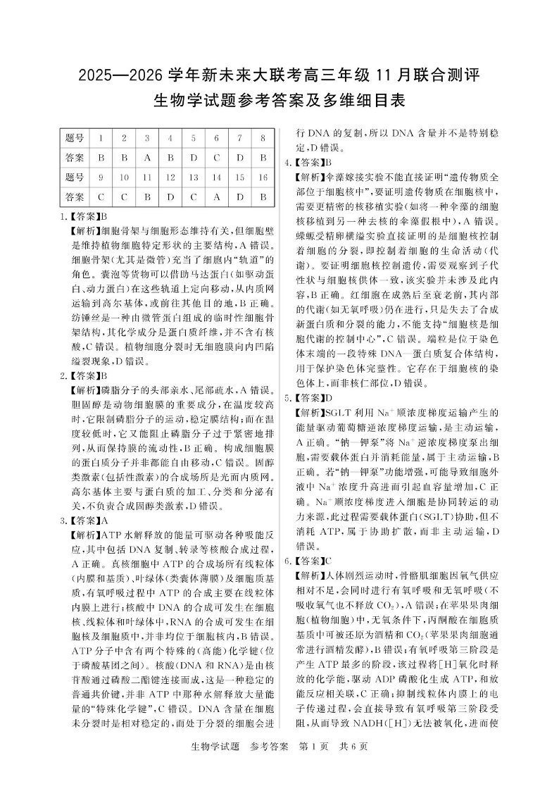 新未来大联考2025一2026学年高三年级11月联合测评 生物答案.pdf