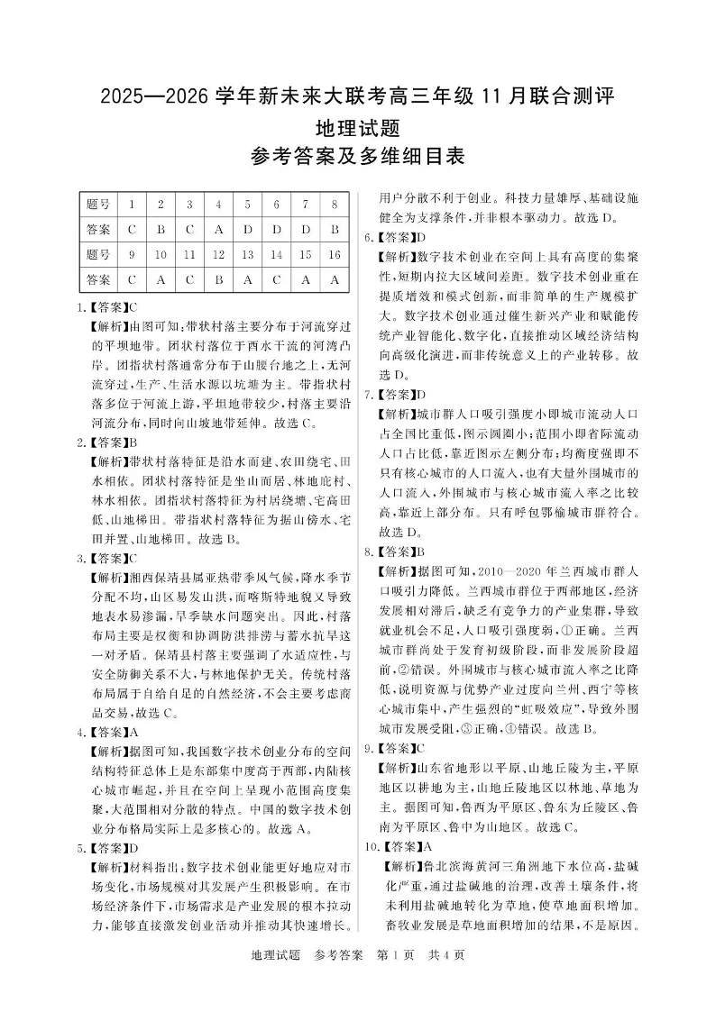 新未来大联考2025一2026学年高三年级11月联合测评 地理答案.pdf