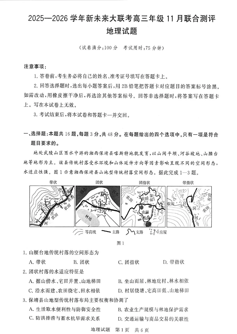 新未来大联考2025一2026学年高三年级11月联合测评 地理.pdf