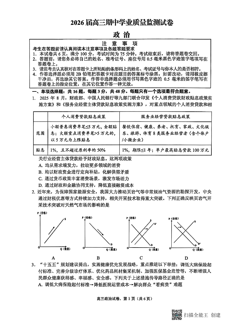 江苏省南通市海安市2026届高三年级上学期期中学业质量监测 政治试卷(含答案).pdf