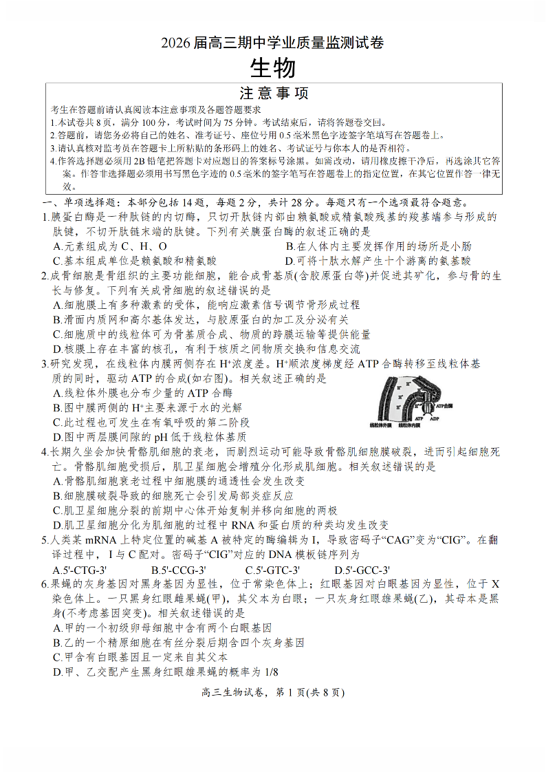江苏省南通市海安市2026届高三年级上学期期中学业质量监测 生物试卷(含答案).pdf