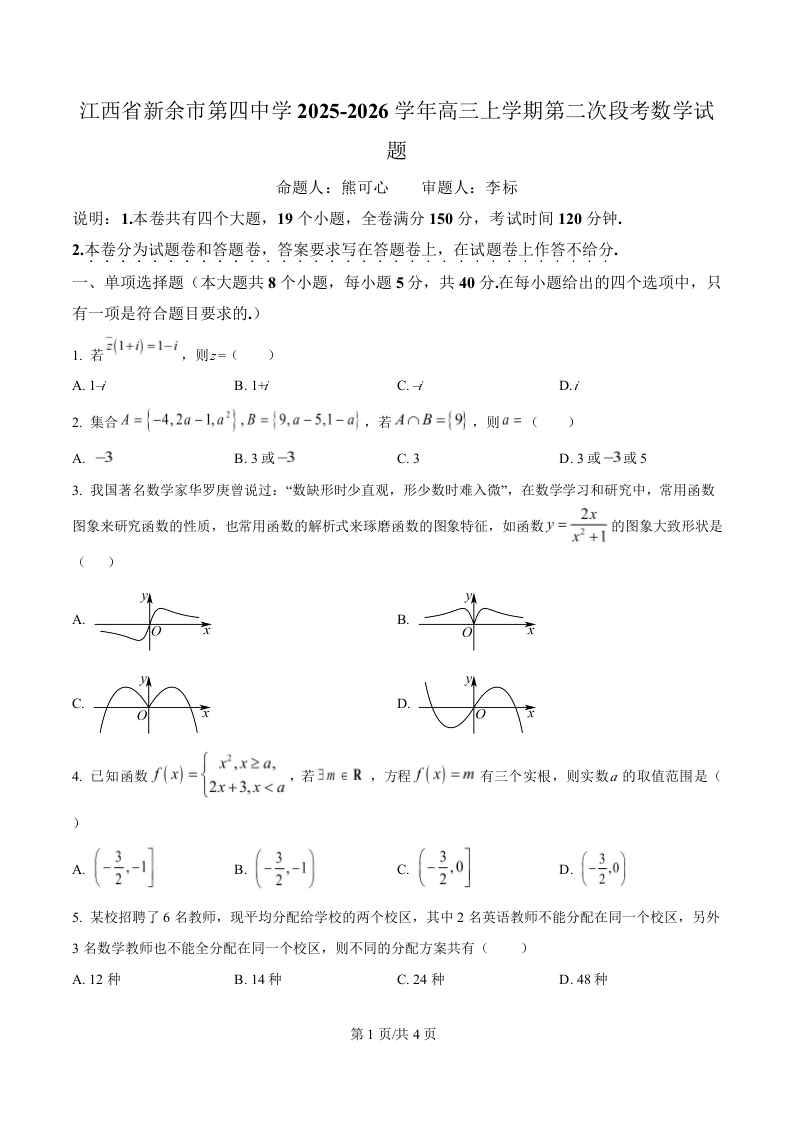 江西省新余市第四中学2026届高三上学期11月第三次段考 数学.docx