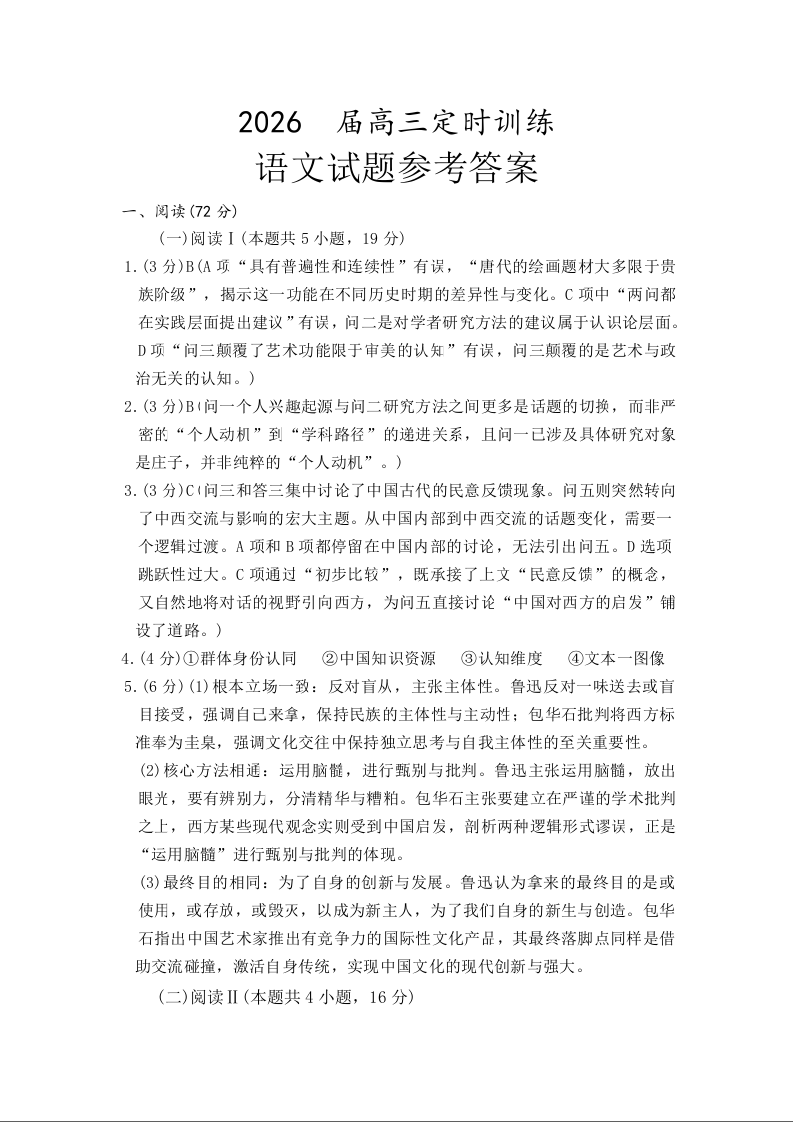 枣庄市、滕州市2025-2026学年高三上学期期中考试 语文答案.docx