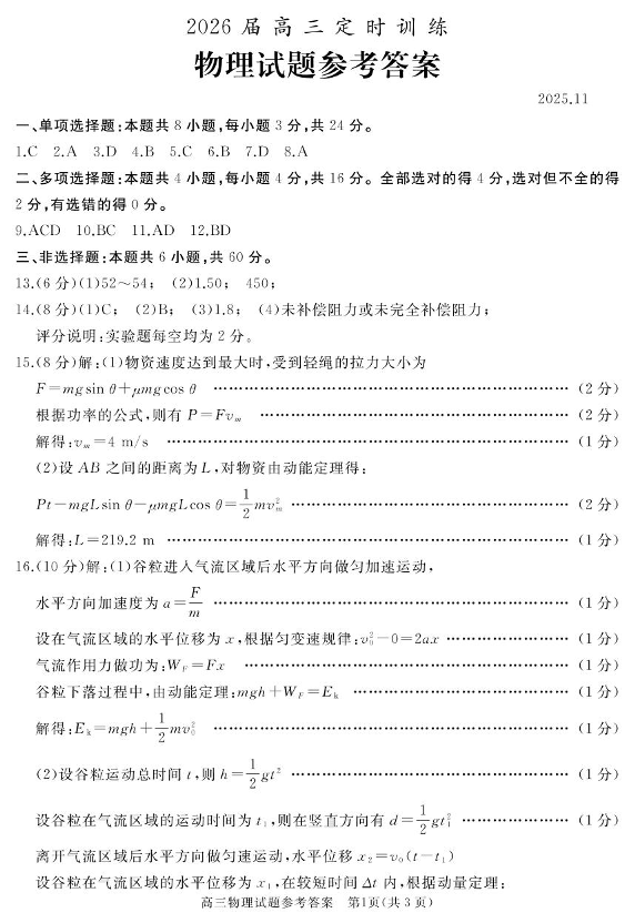 枣庄市、滕州市2025-2026学年高三上学期期中考试 物理答案.pdf