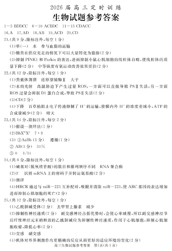 枣庄市、滕州市2025-2026学年高三上学期期中考试 生物答案.pdf