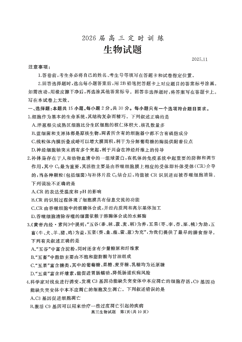 枣庄市、滕州市2025-2026学年高三上学期期中考试 生物.pdf