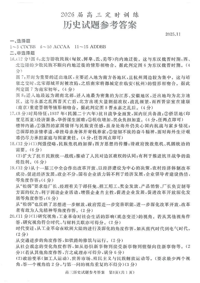 枣庄市、滕州市2025-2026学年高三上学期期中考试 历史答案.pdf