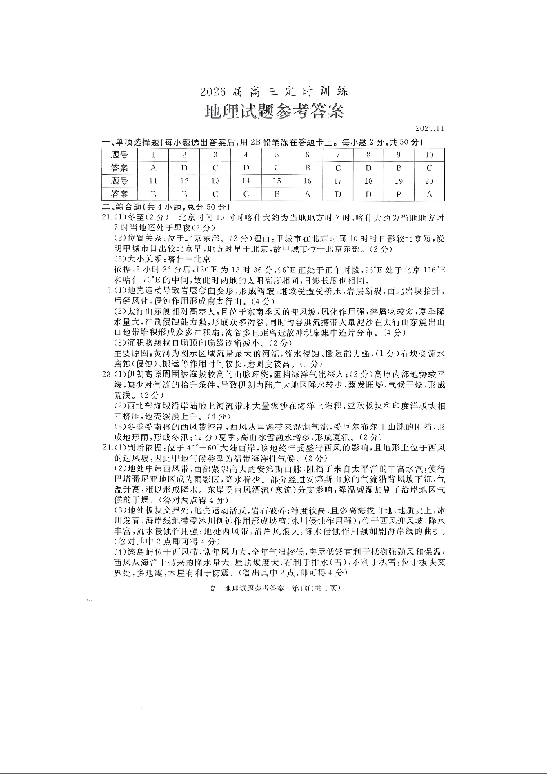 枣庄市、滕州市2025-2026学年高三上学期期中考试 地理答案.docx