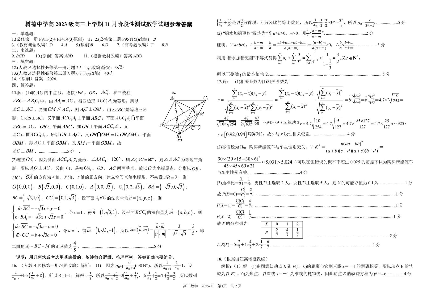 树德中学高2023级高三上学期11月阶段测试 数学答案.pdf