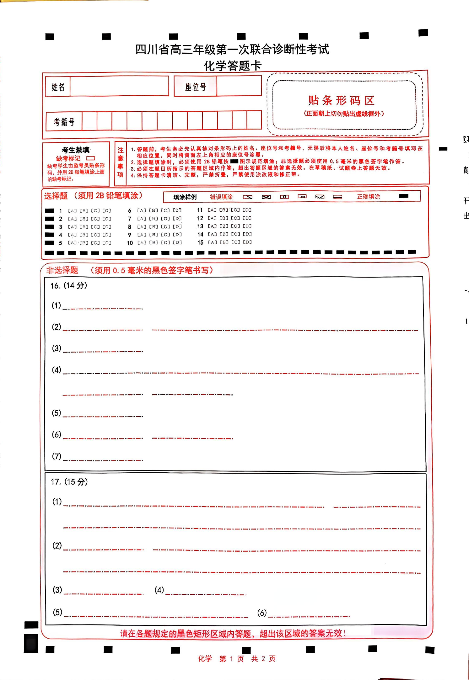 四川省蓉城名校联盟2026届高三第一次联合诊断性考试化学答题卡.pdf