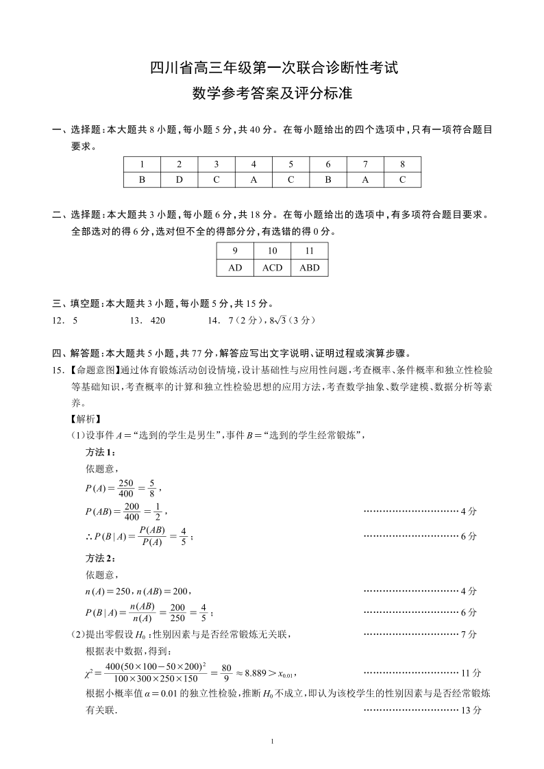 四川省蓉城名校联盟2026届高三第一次联合诊断性考试 数学答案.pdf
