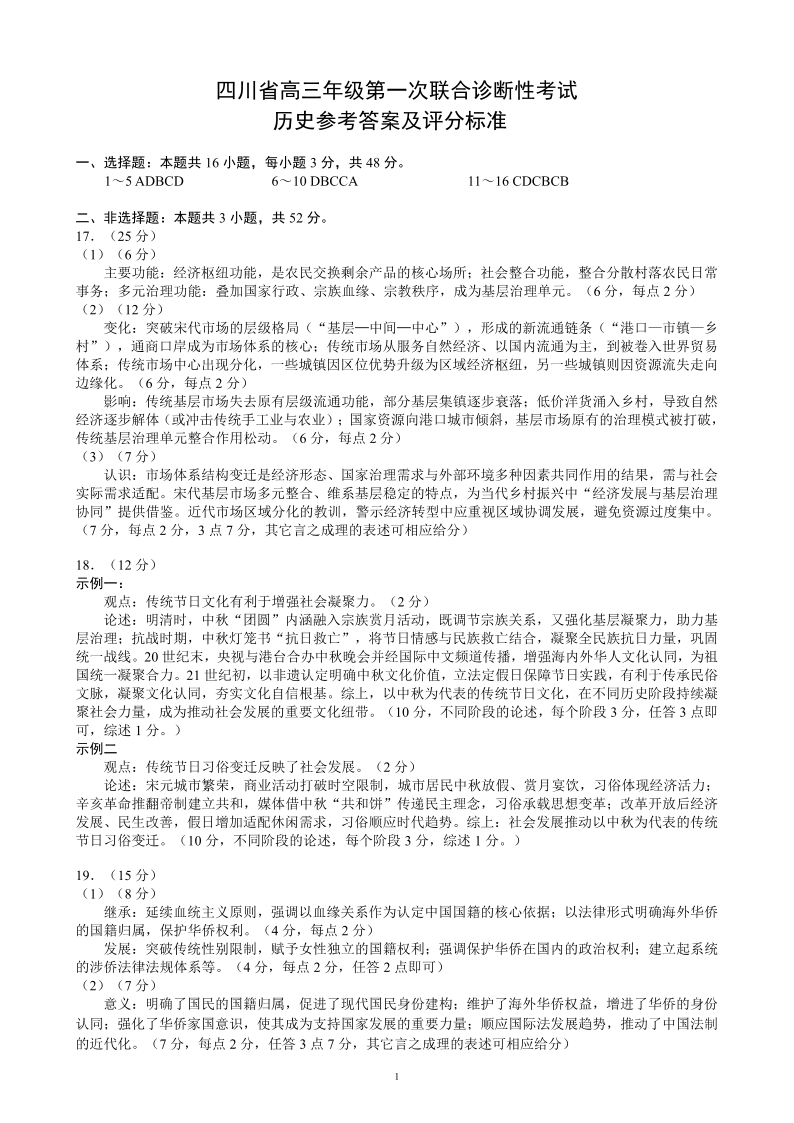 四川省蓉城名校联盟2026届高三第一次联合诊断性考试 历史答案.pdf