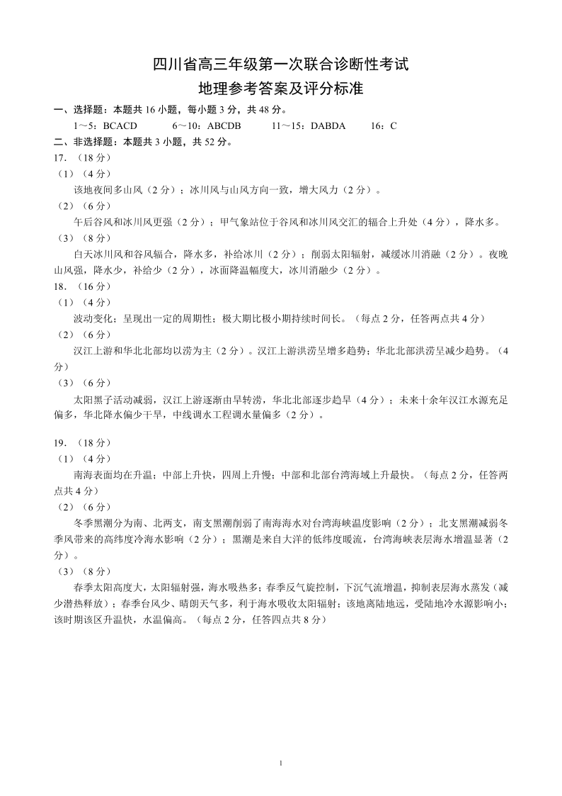 四川省蓉城名校联盟2026届高三第一次联合诊断性考试 地理答案.pdf