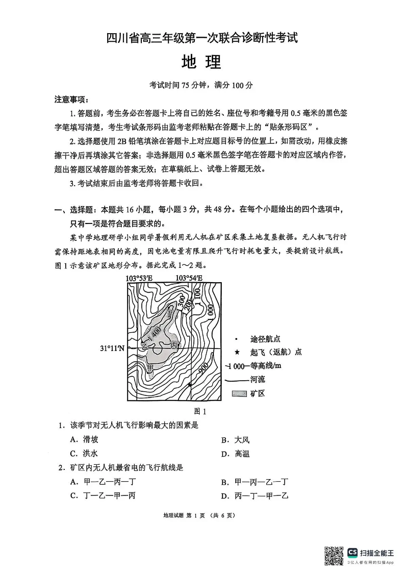 四川省蓉城名校联盟2026届高三第一次联合诊断性考试 地理.pdf