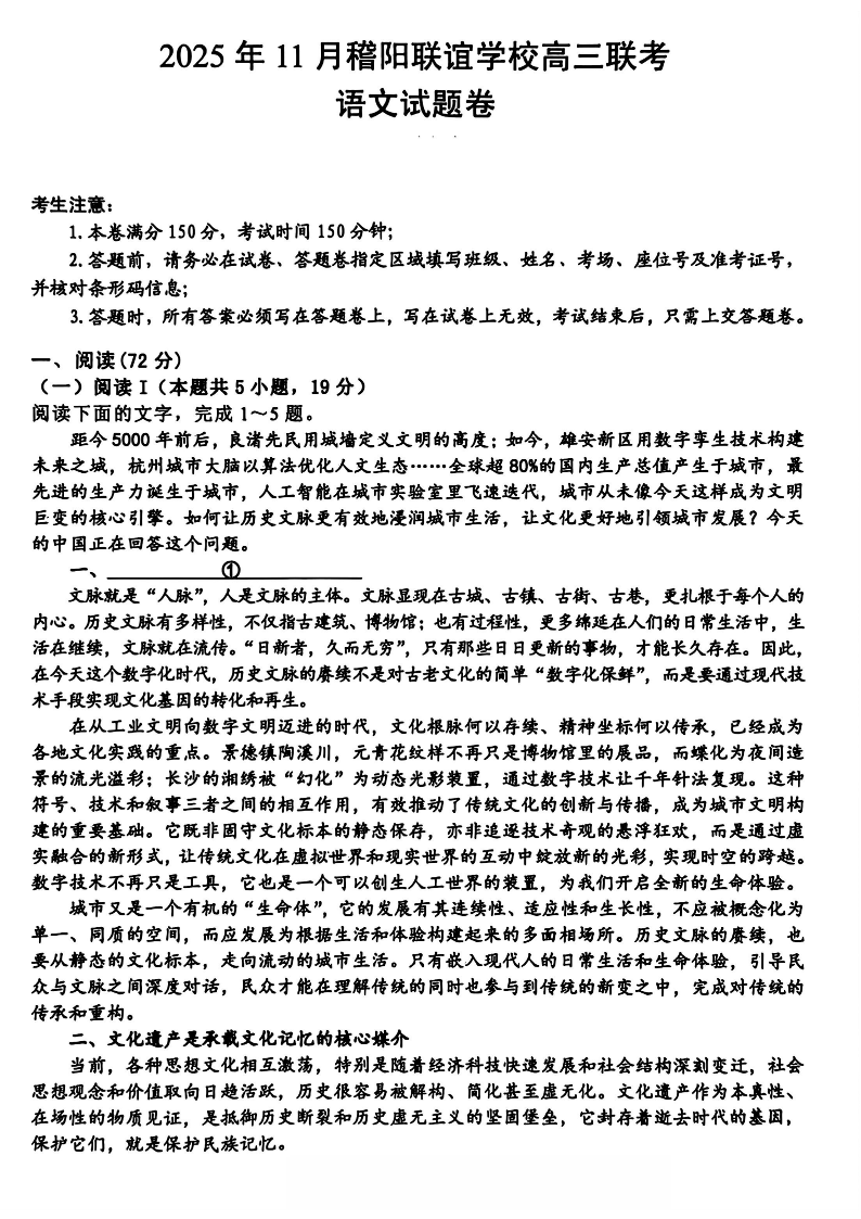浙江省稽阳联谊学校2025年11月高三上学期期中联考 语文.pdf