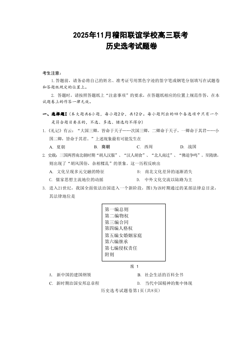 浙江省稽阳联谊学校2025年11月高三上学期期中联考 历史.pdf