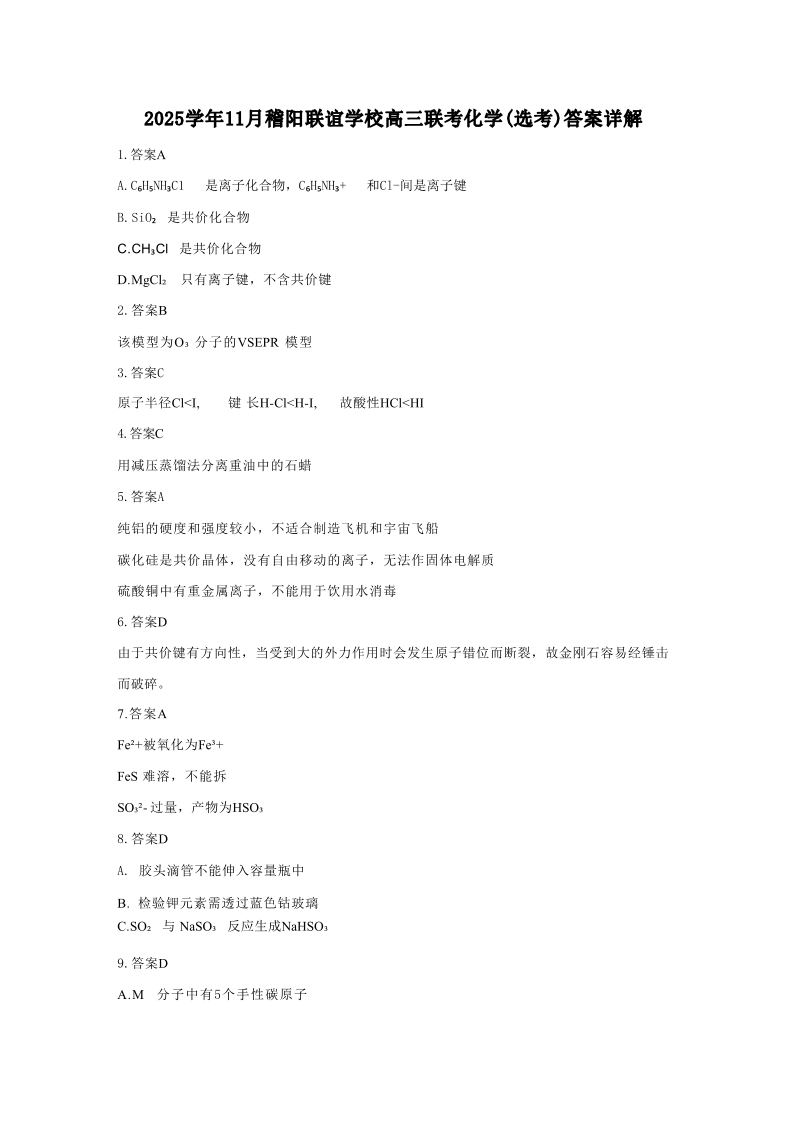 浙江省稽阳联谊学校2025年11月高三上学期期中联考 化学答案.pdf