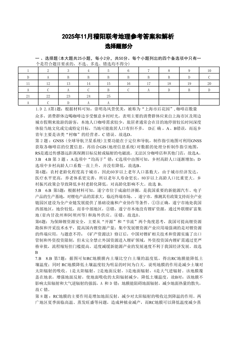 浙江省稽阳联谊学校2025年11月高三上学期期中联考 地理答案.pdf