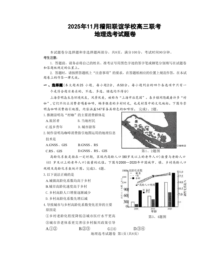 浙江省稽阳联谊学校2025年11月高三上学期期中联考 地理.pdf