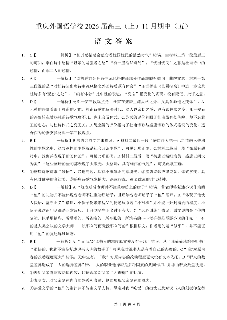 重庆外国语学校2026届高三(上)11月期中(五)语文答案.pdf