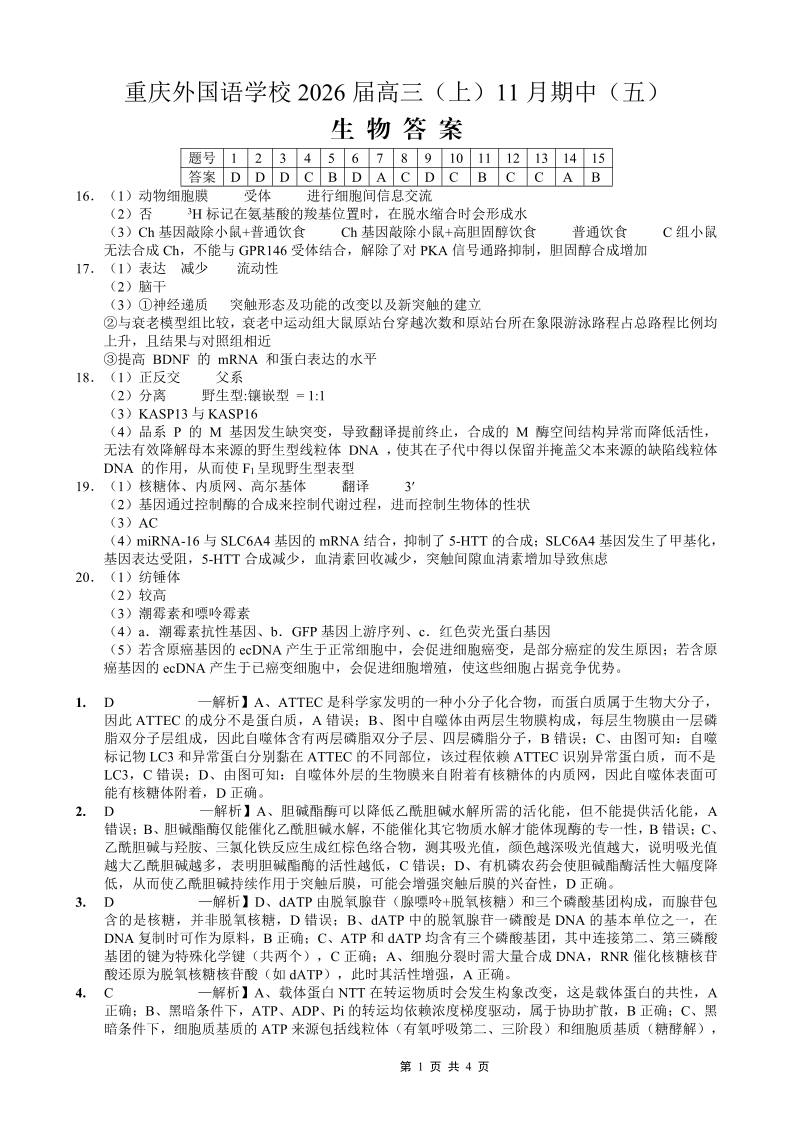 重庆外国语学校2026届高三(上)11月期中(五)生物答案.pdf