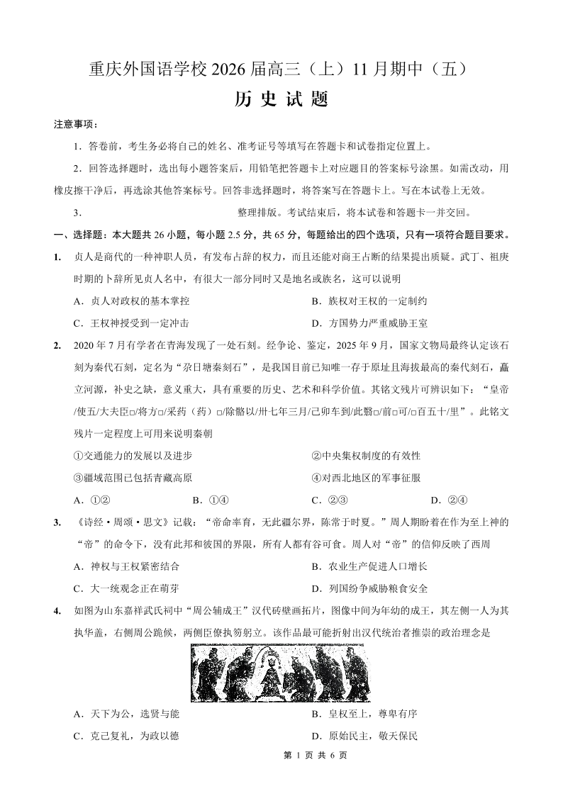 重庆外国语学校2026届高三(上)11月期中(五)历史.pdf