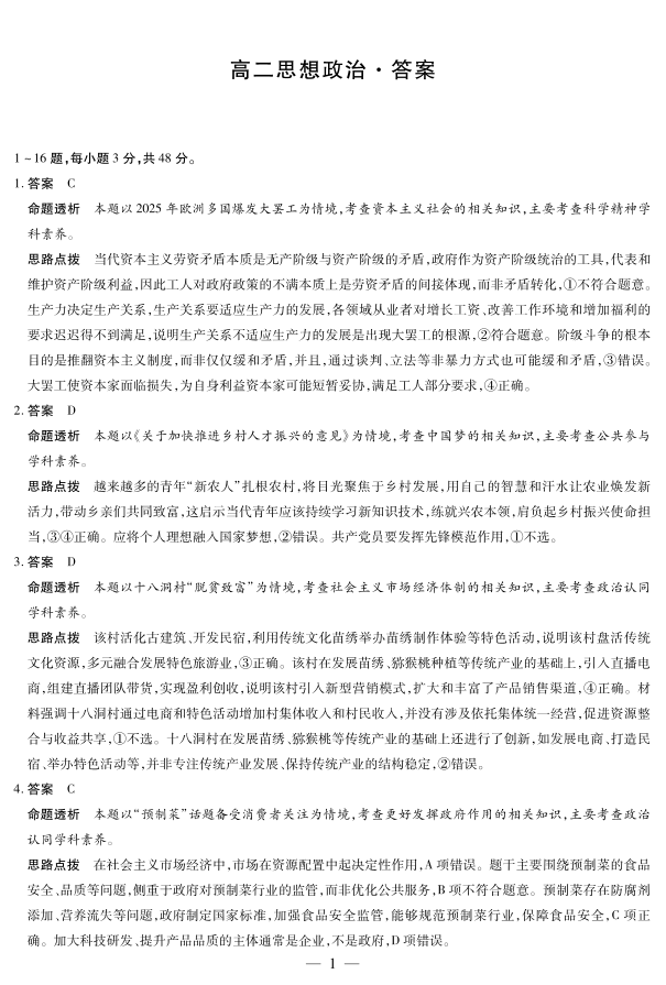 思想政治湖南高二上期中详细答案.pdf
