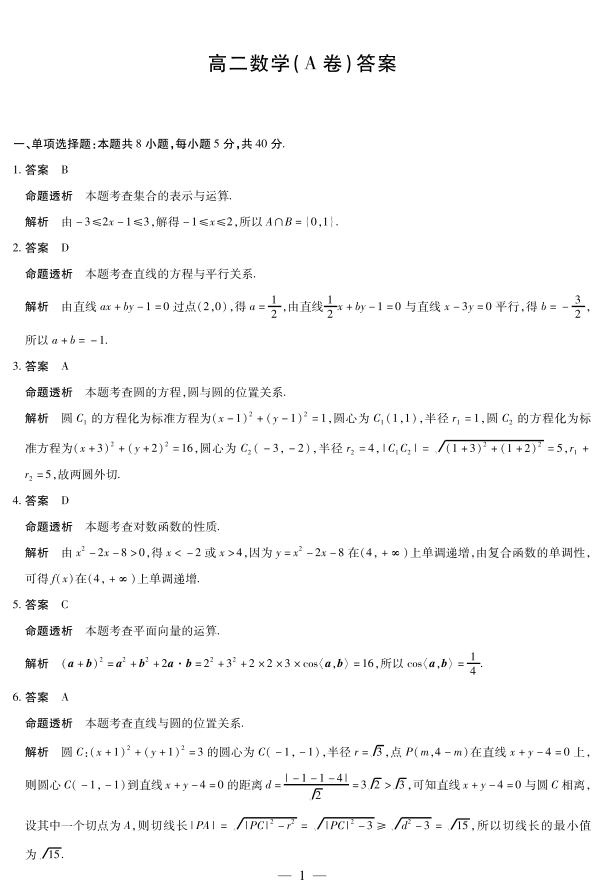 数学A卷湖南高二上期中详细答案.pdf