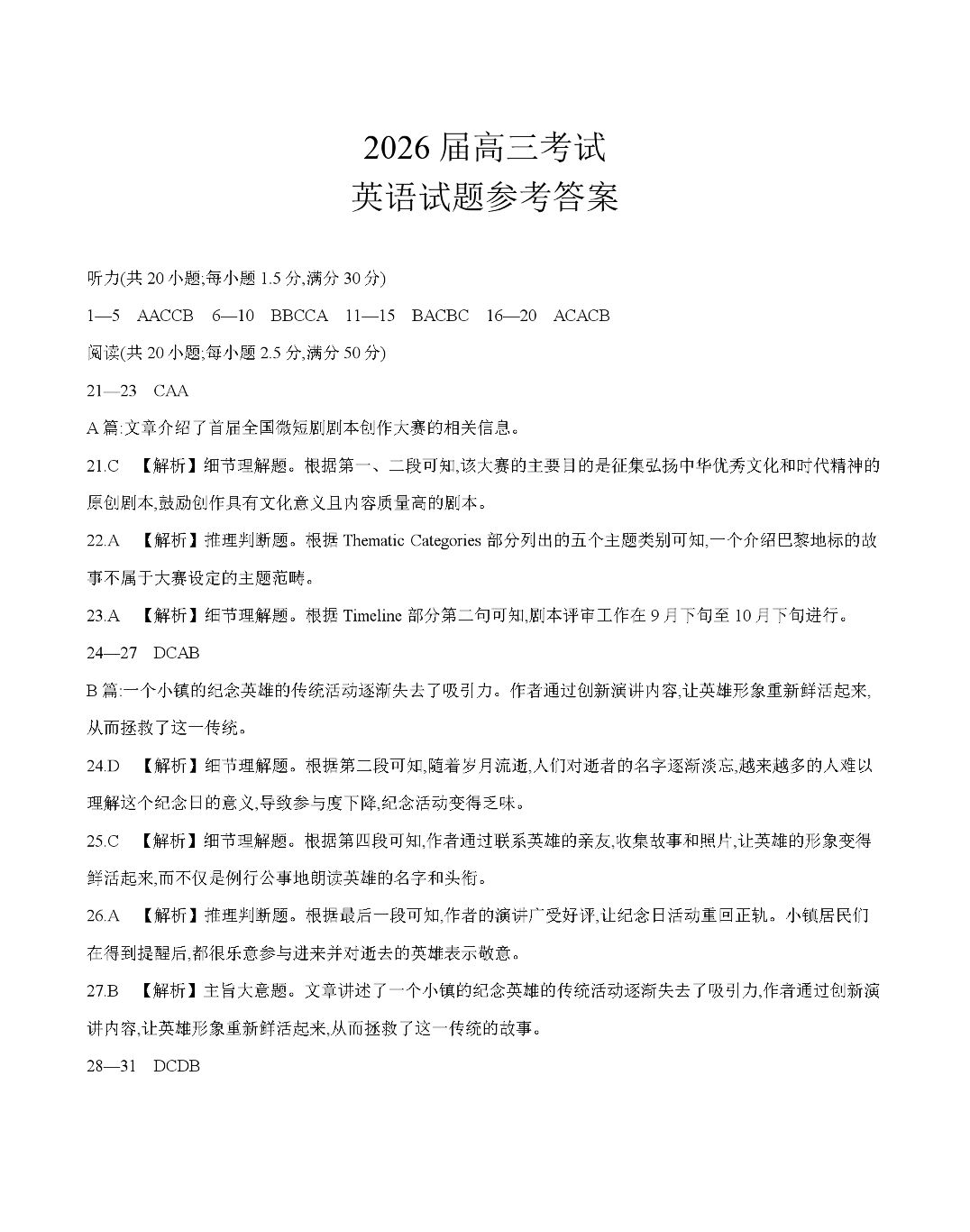 四川省2026届高三上学期11月联考 英语答案.pdf