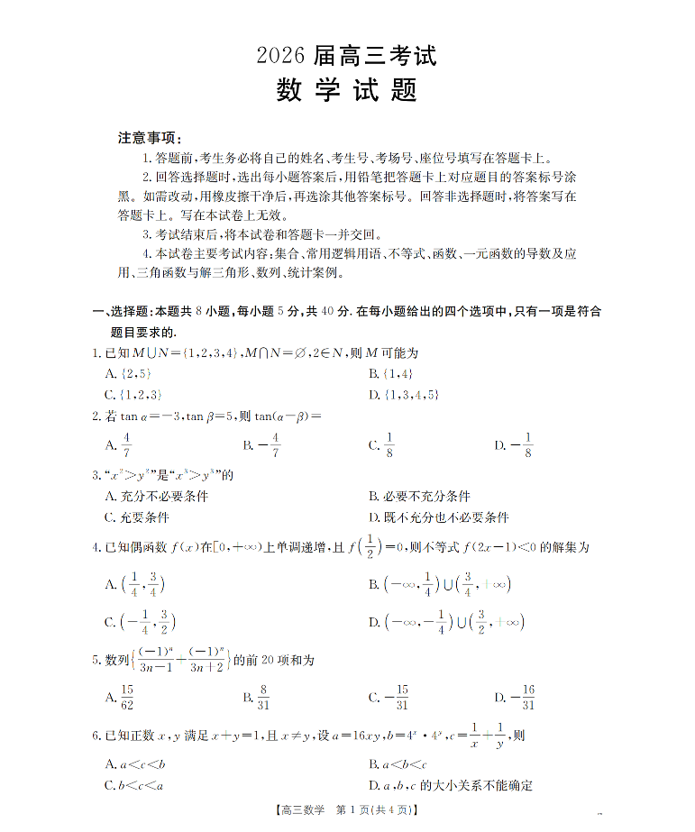四川省2026届高三上学期11月联考 数学.pdf